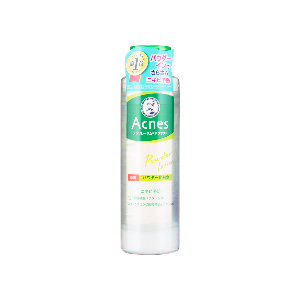 Acnes藥用抗痘粉狀調理水:含抗菌成分,添加皮脂吸附粉末,持續維持肌膚清爽感;含保濕成分,給予肌膚潤澤感;調理水能夠縮小毛孔,調理肌膚成為不易長痘痘的膚質!