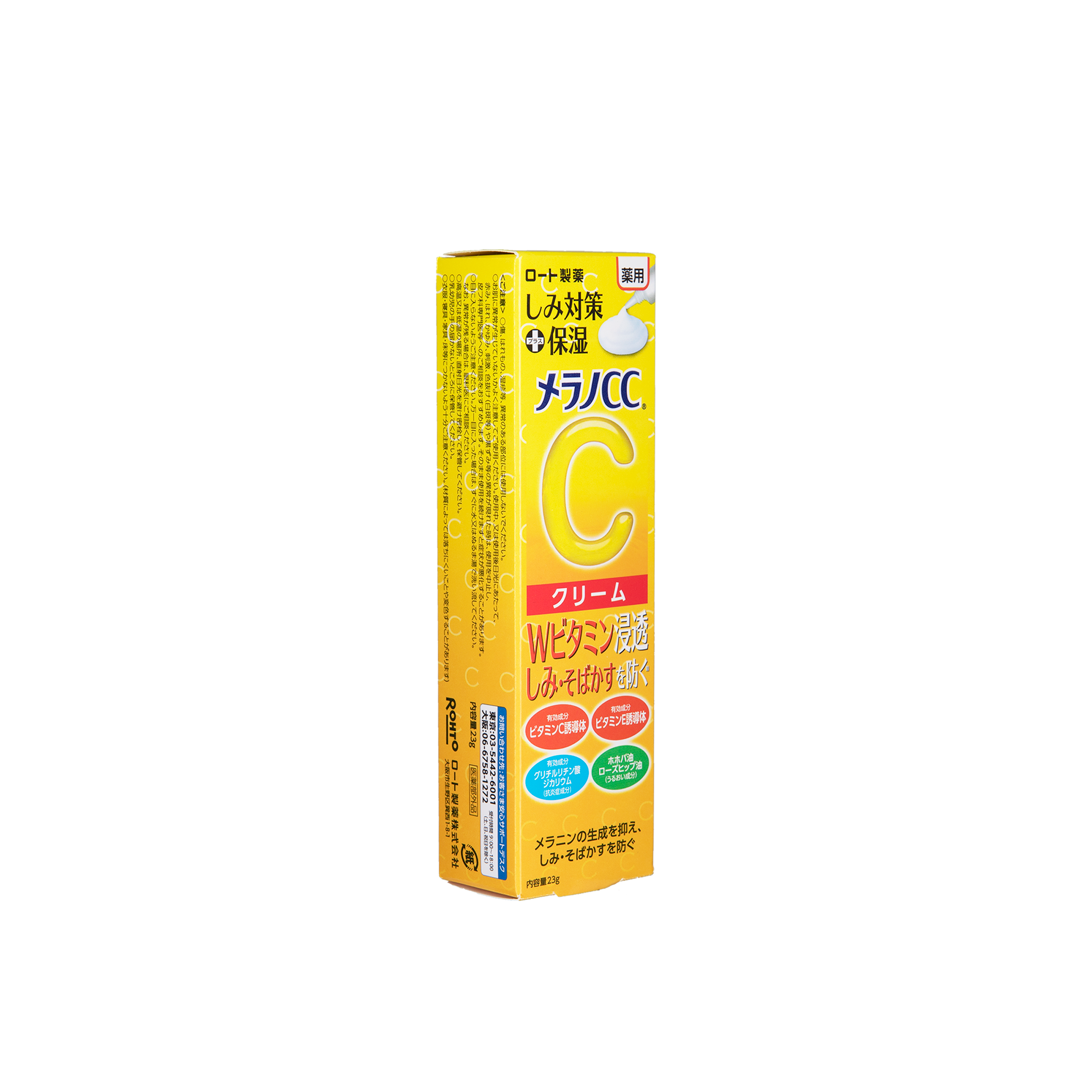 產品採用了樂敦製藥特別研發的“雙重維他命”處方,其中含有美白有效成分的活性維他命C*,以及促進血液循環的維他命E誘導體。樂敦製藥特有的維他命滲透技術,令美白有效成分充分滲透至角質層深處,抑制黑色素的發生,有效預防皮膚斑點,打造肌膚透明感。
