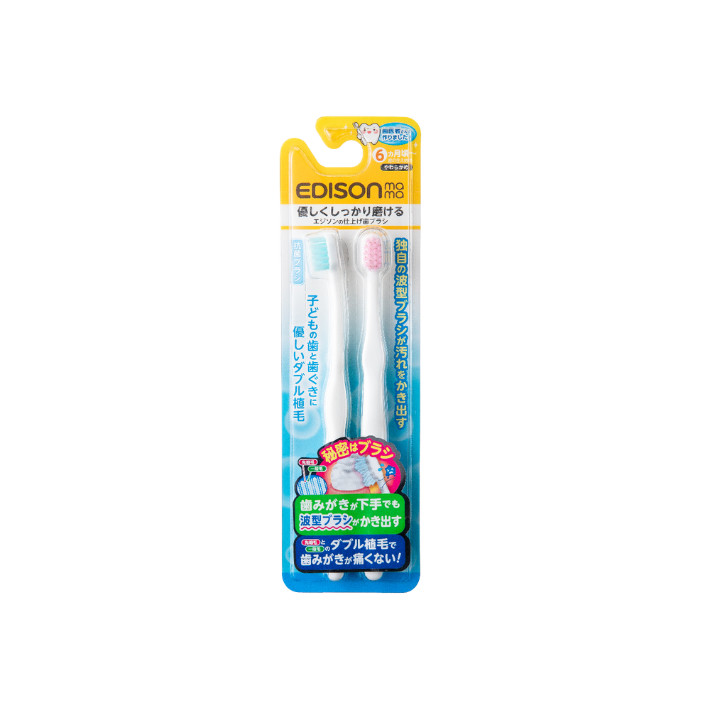 • 特長的握柄讓成人多角度握拿,容易調整為寶寶刷牙時的角度