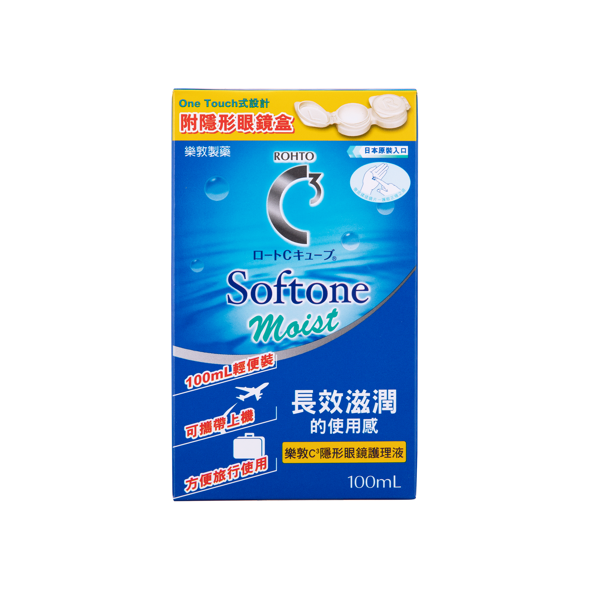 • OneTouch瓶蓋及首創倒置式存放眼鏡盒,大大減少因使用處理不當而滋生的細菌。