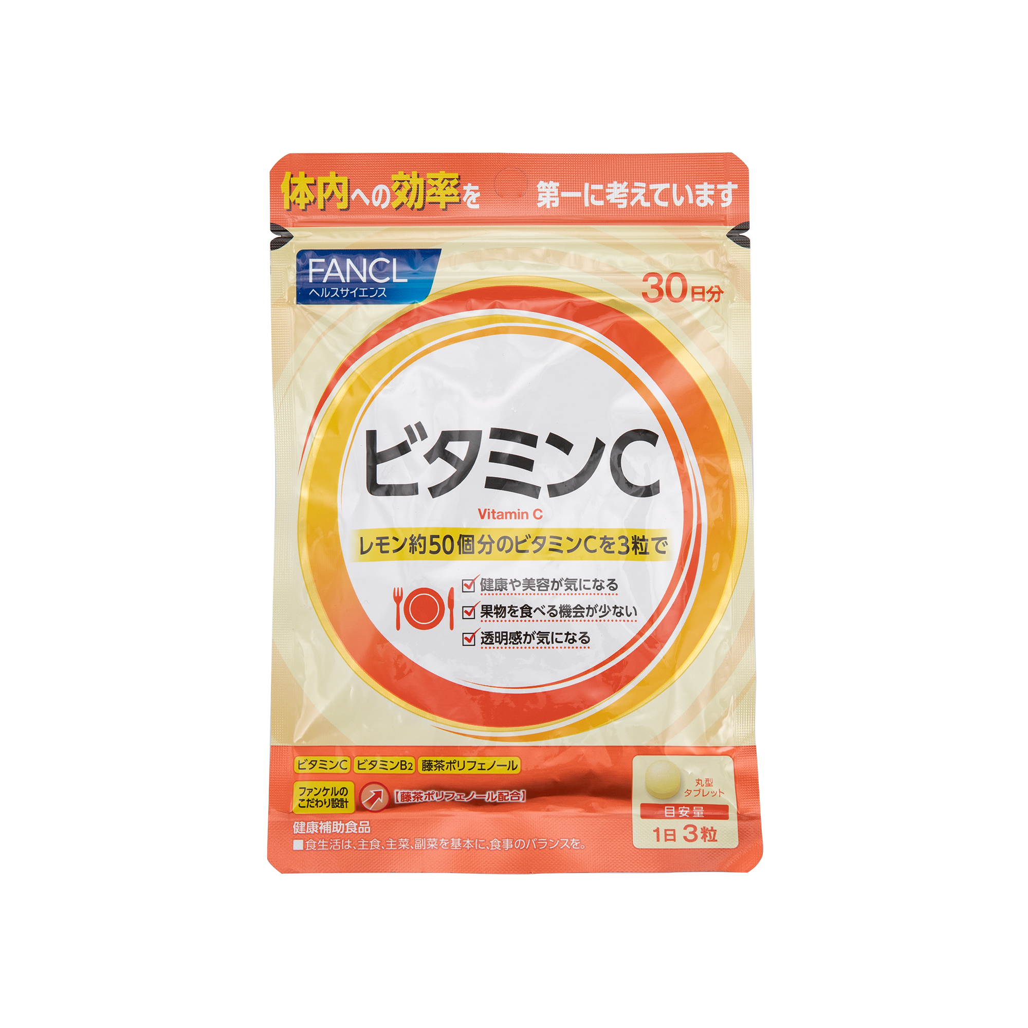 功效 :每粒含有相若於 18 個檸檬的維他命 C 分量,對身體及肌膚健康有幫助,並加入維他命 P (橙皮甙苷),有助身體吸收維他命 C。