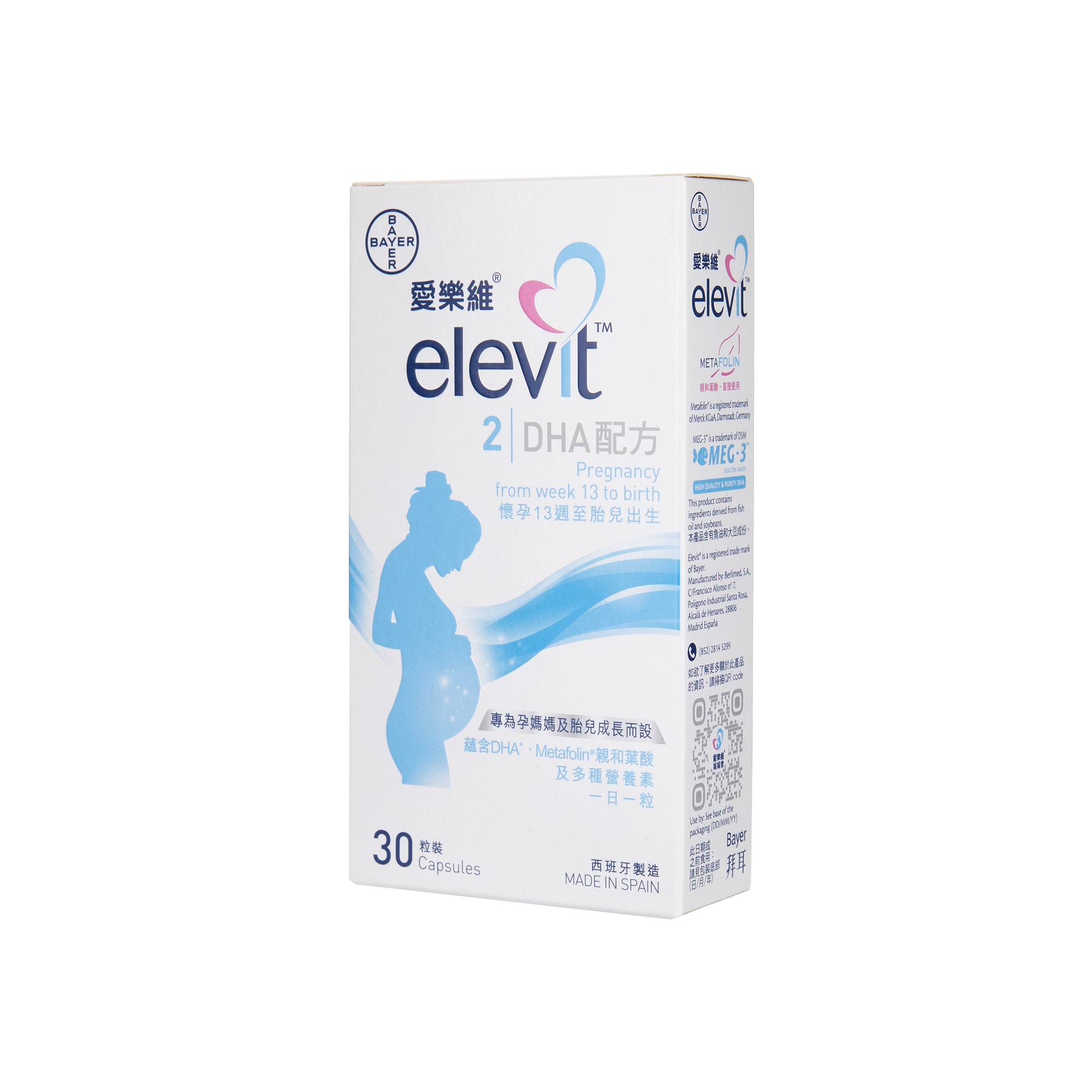 一粒蘊含DHA200mg、葉酸400 mcg (其中包括親和葉酸Metafolin®),、多種維他命及礦物質