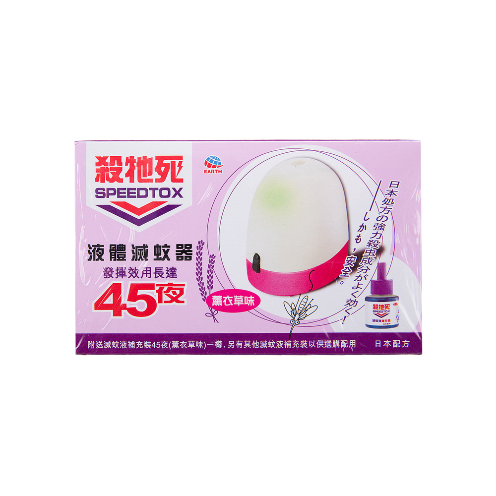 每盒殺牠死電子液體滅蚊器45夜(薰衣草味)均附有一盒殺牠死滅蚊液(補充裝)45夜(薰衣草味)。有效殺滅惡蚊,長達45夜。另外,殺牠死電子液體滅蚊器配有電線,方便隨意放於家中不同位置,「放到邊,殺到邊」!