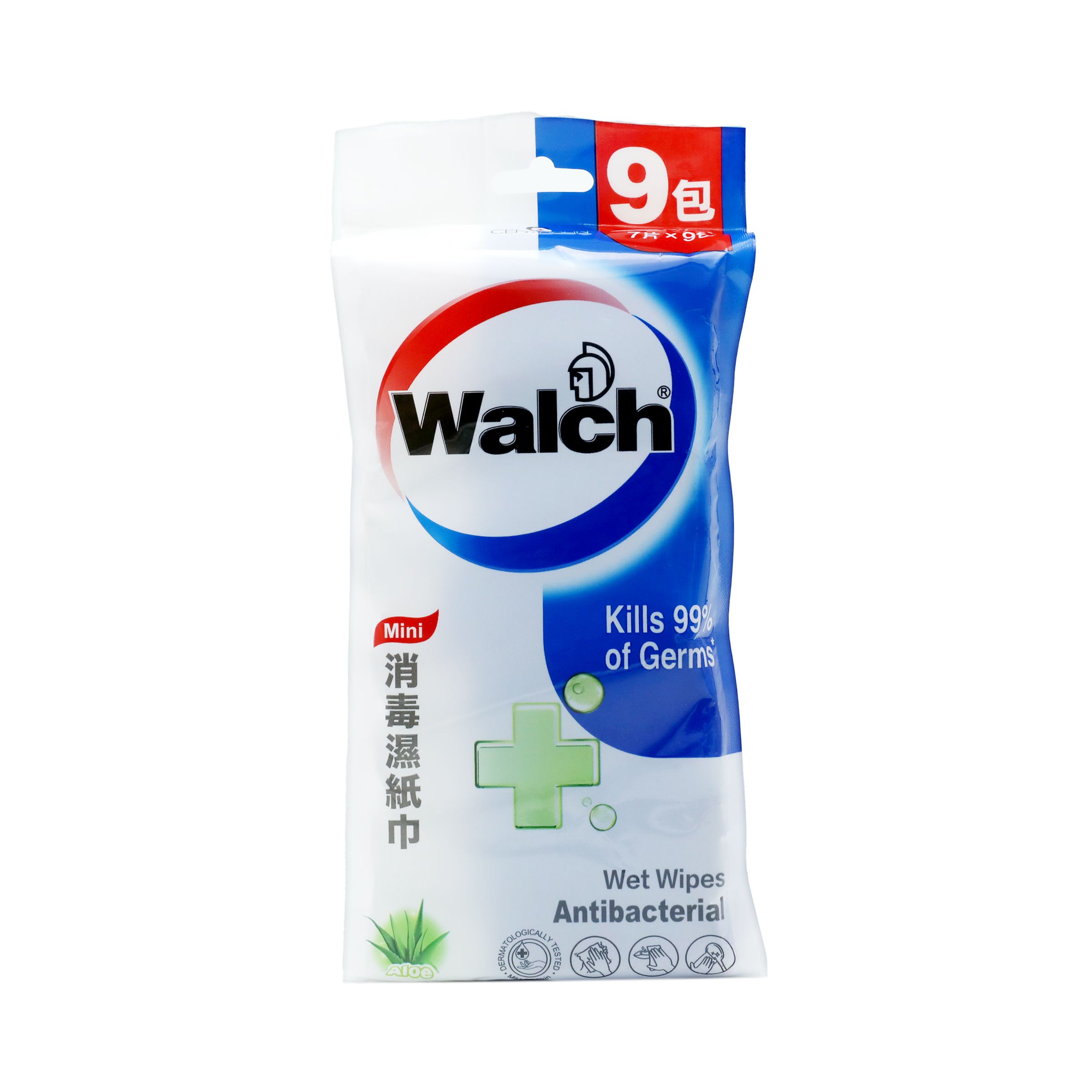 WALCH 威露士迷你消毒濕紙巾 – 蘆薈 7片x9’S