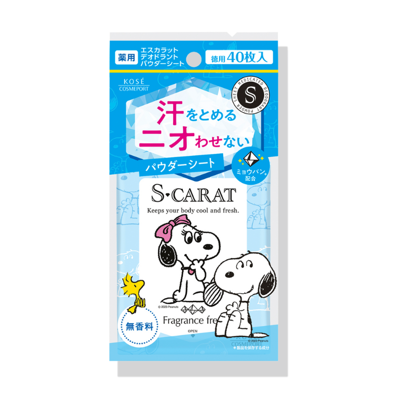 KOSE 高絲 S-CARAT SNOOPY 藥用止汗清爽濕紙巾 – 無香 40’S
