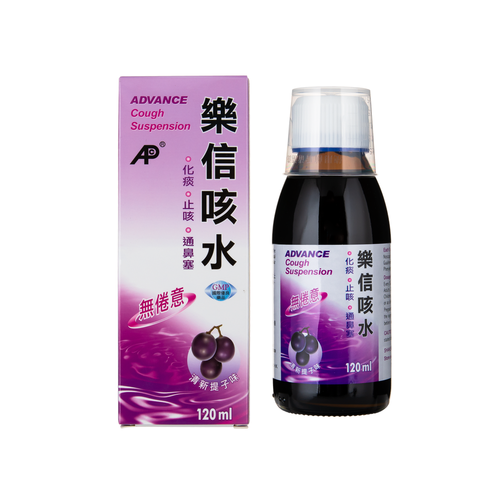 樂信咳水採取了懸浮技術,一方面保留藥水之藥理效用,另一方面卻可緩和一般咳藥水有之苦澀味,減少兒童及成人對服藥所產生之抗拒。本品加入清新提子味,使服用者更容易入口。